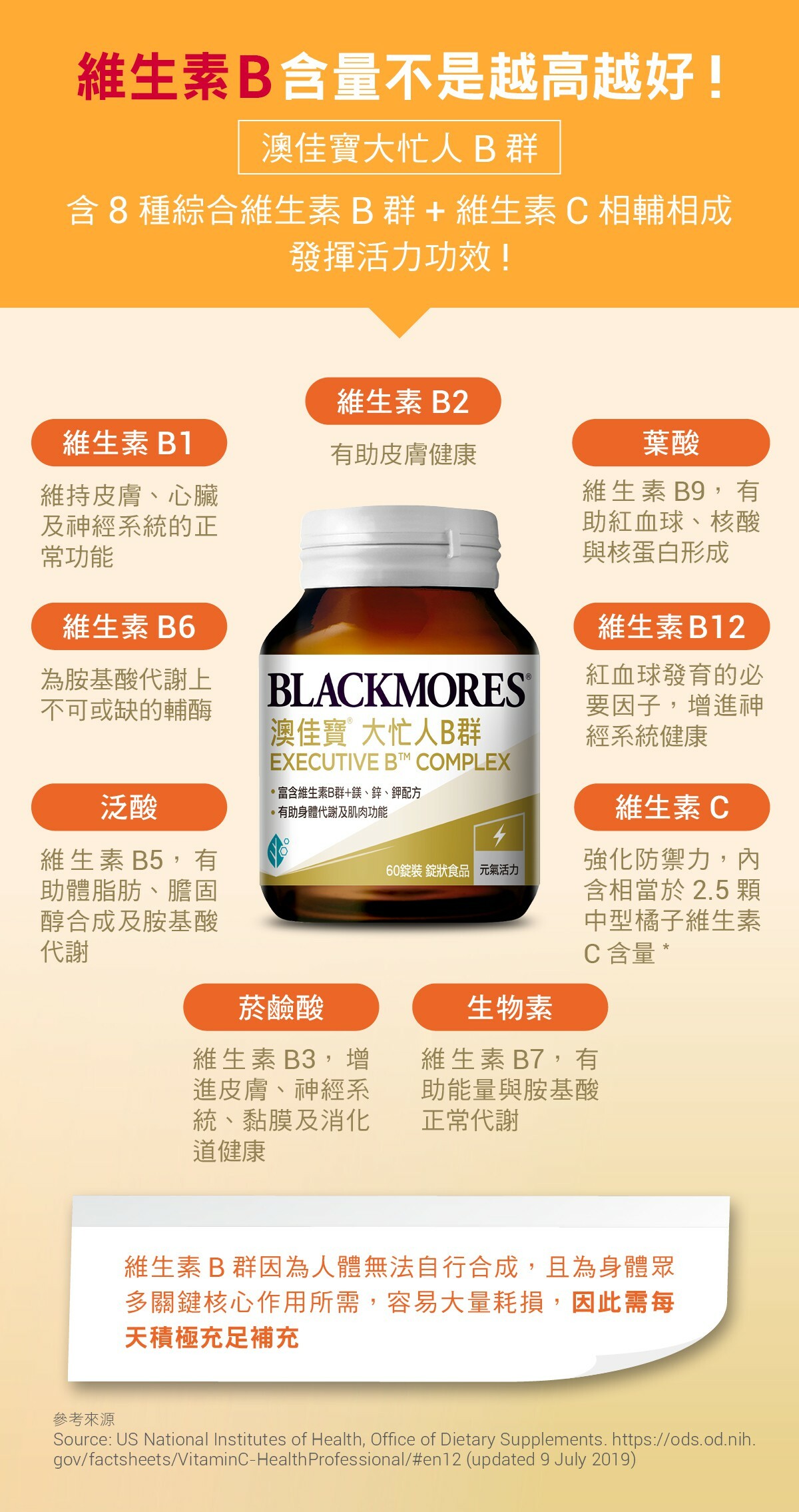 八種完整B群與維生素C維持活力與健康力